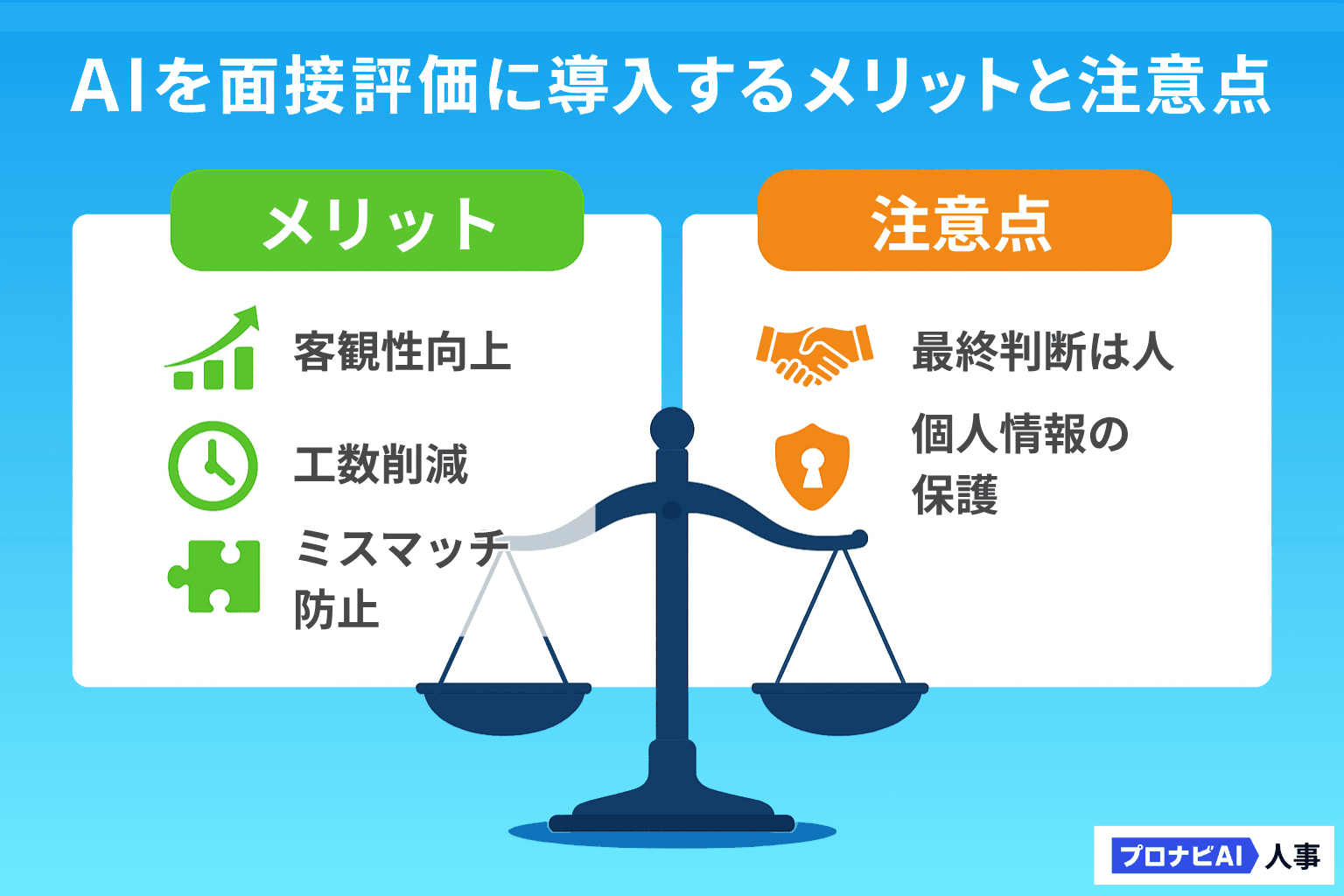 AIの活用は、採用業務に大きなメリットをもたらしますが、万能ではありません。導入を成功させるために、メリットと注意点の両方を理解しておくことが重要です。