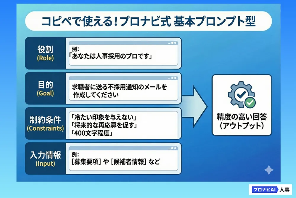 その際、「冷たい印象を与えず、将来的な再応募の可能性を残す文面で」と条件を加えることで、AIの表現力を実感できます。
