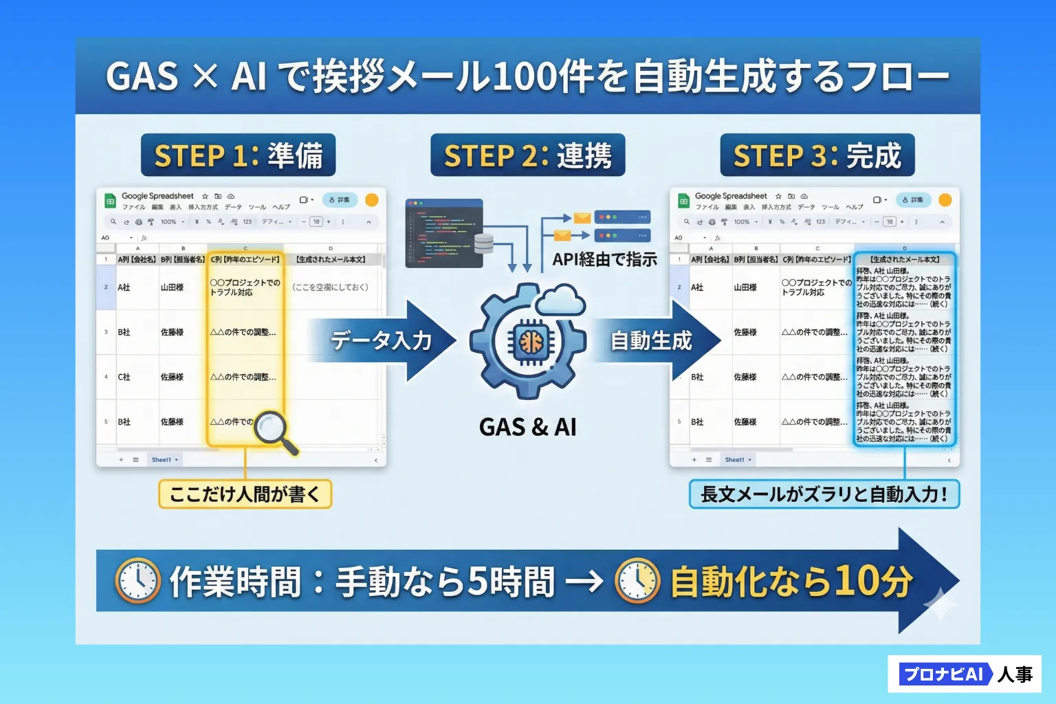 【効率化編】GAS×AIで100件の挨拶メールを半自動化する