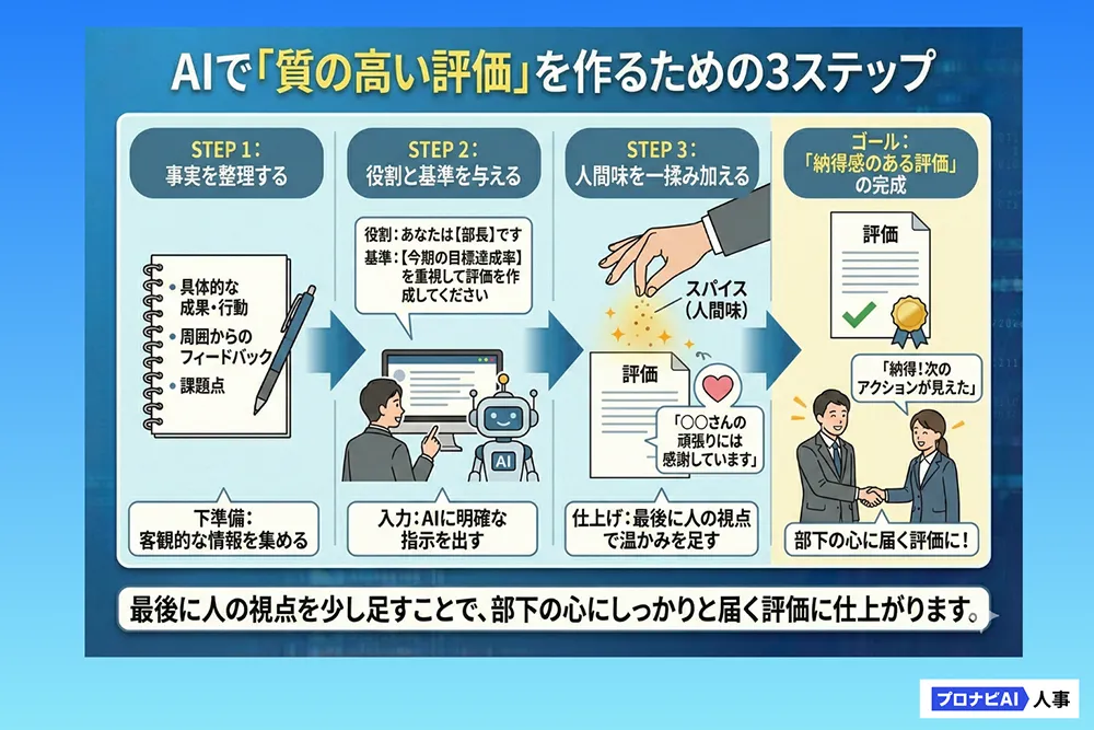 最後に人の視点を少し足すことで、部下の心にしっかりと届く評価に仕上がります。