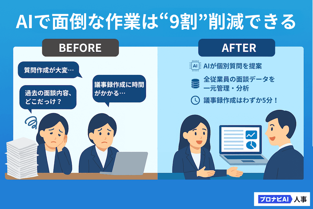 面談内容は必ず議事録として記録し、関係者間で適切に共有する仕組みを作りましょう。この「記録」こそが、次に紹介するAI活用の本領が発揮される領域です。