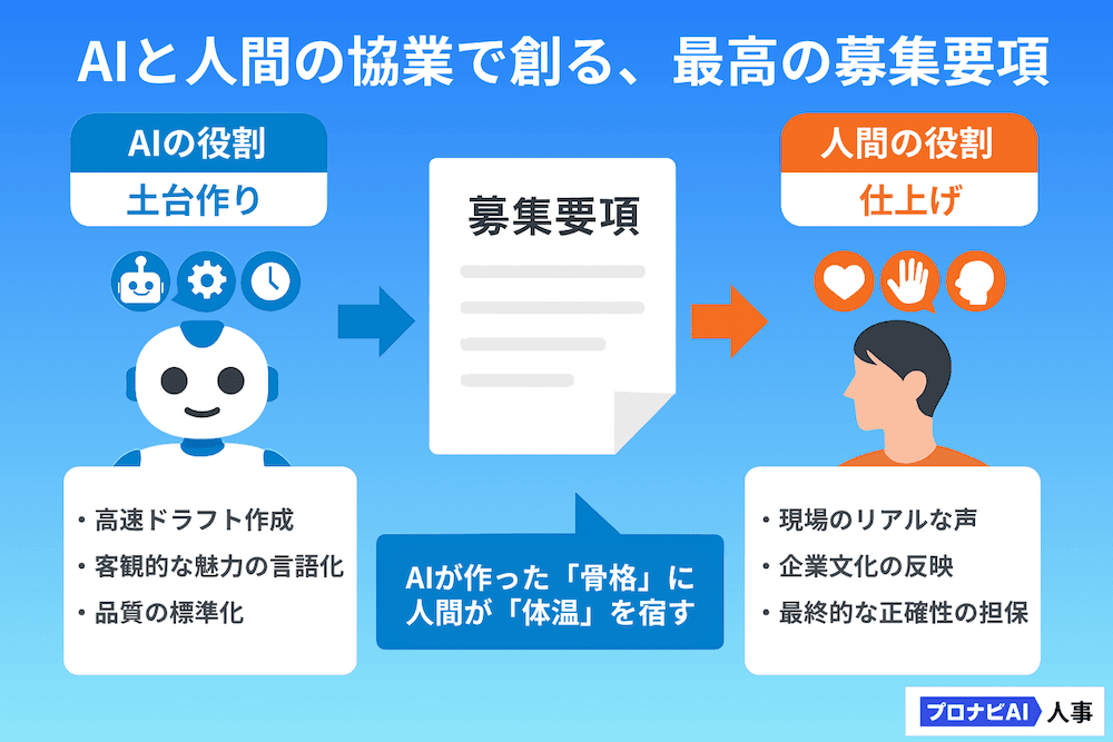 AIは非常に強力なアシスタントですが、完璧ではありません。最後に「人間ならでは」の視点を加えることで、募集要項は真に求職者の心を動かすものになります。