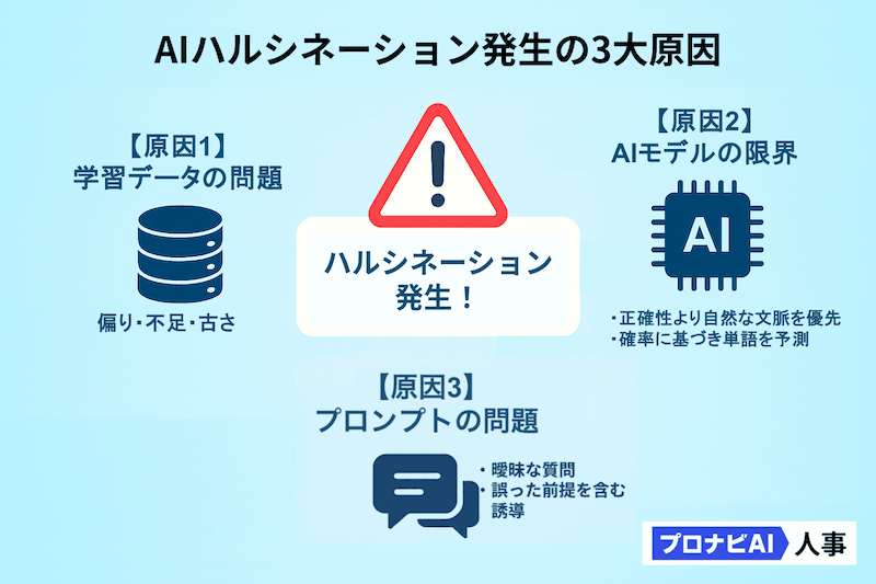 - ハルシネーションが発生してしまう主な3つの原因