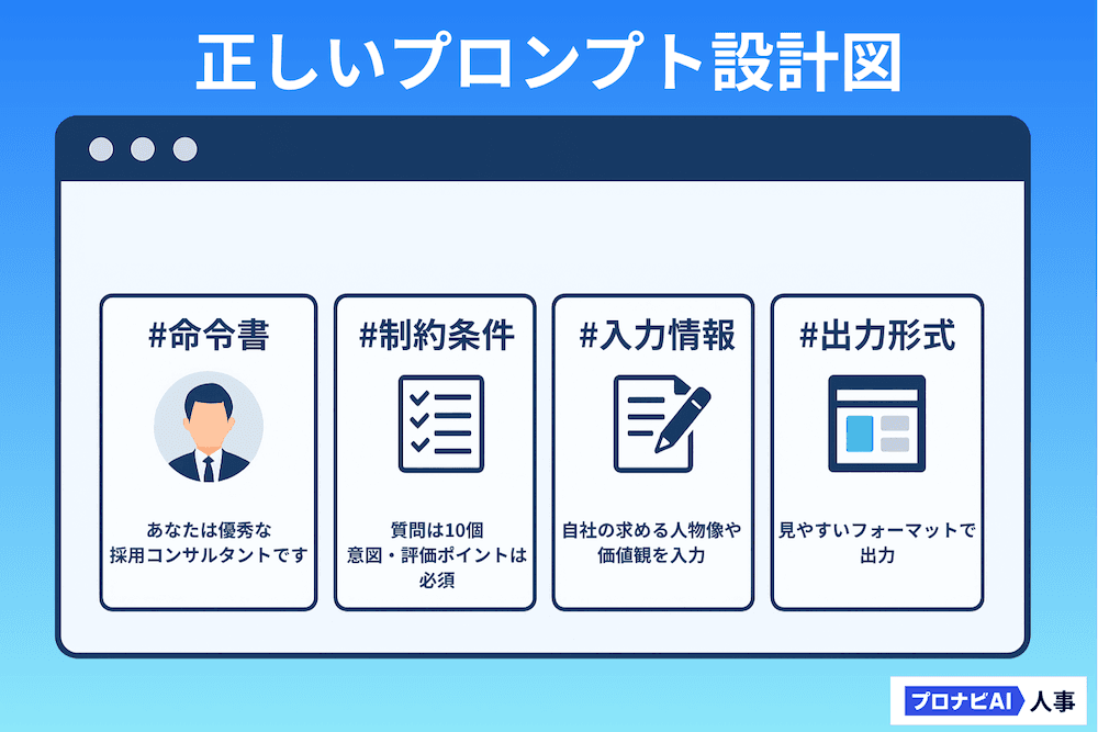 - #命令書: AIに「採用コンサルタント」という役割を与えることで、より専門的で質の高いアウトプットを引き出します。