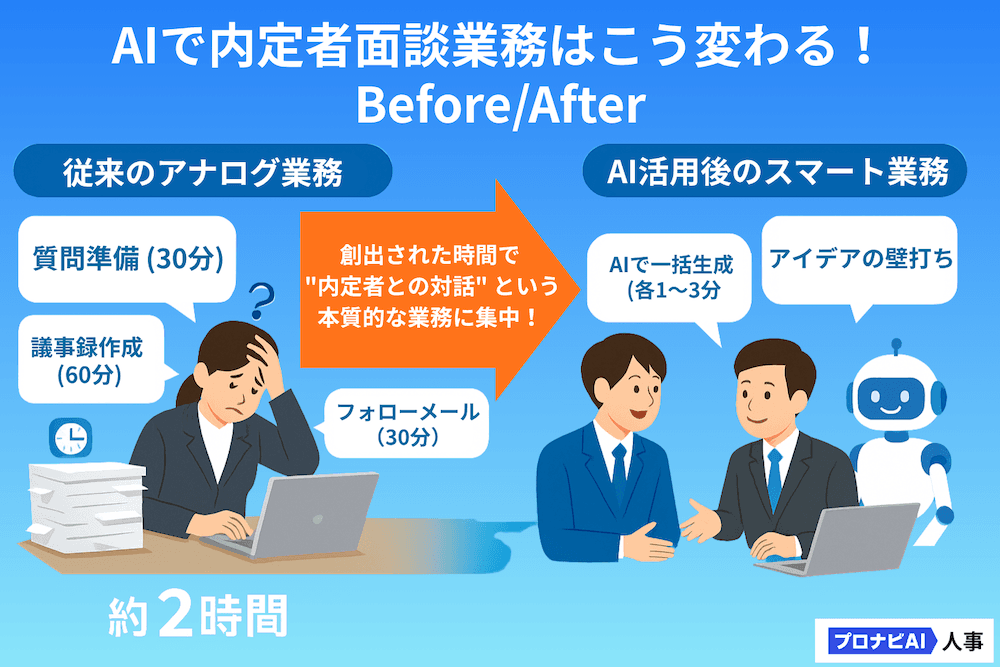 事務作業をAIに任せ、内定者との対話時間を増やす