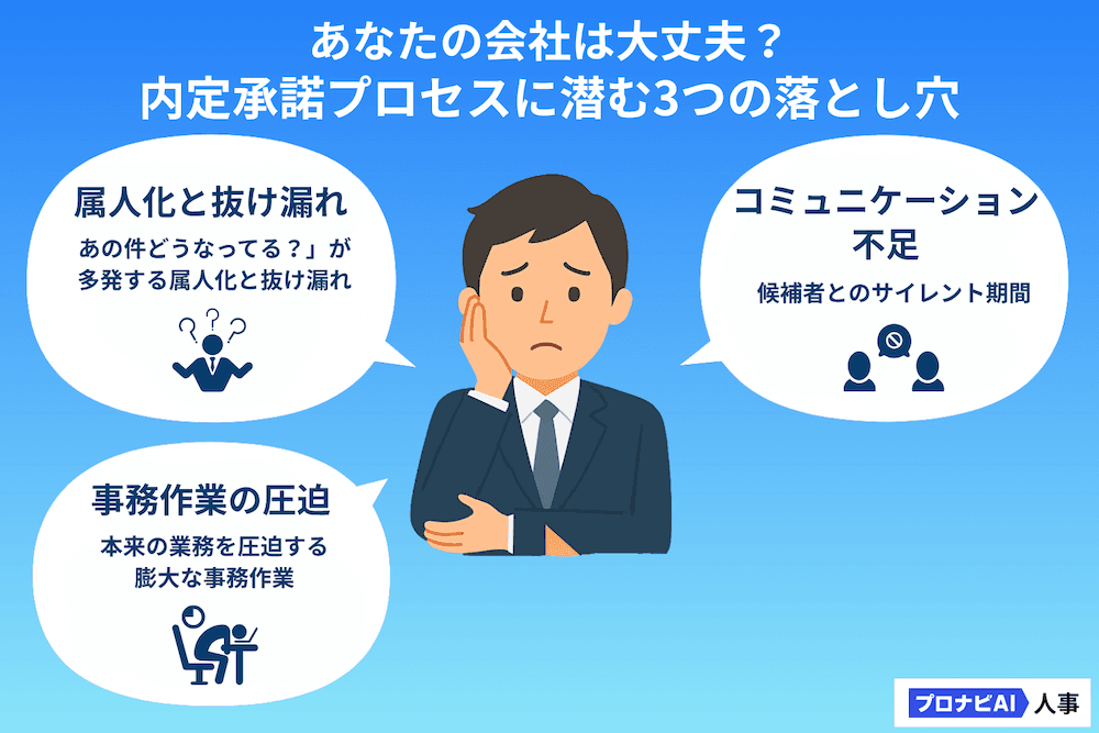 書類作成やメールの文面作成、進捗管理といった事務作業に追われ、最も重要であるはずの「候補者一人ひとりに寄り添うコミュニケーション」に時間を割けていないのが実情です。テンプレート通りの連絡だけでは、候補者の心をつなぎとめることは困難です。