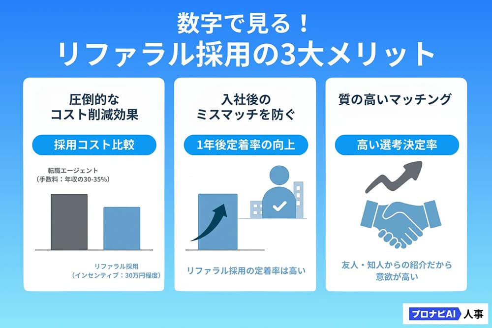 リファラル採用のメリットは、具体的な数値にも表れています。