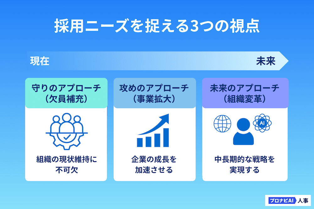 採用ニーズを把握するには、一般的に以下の3つのアプローチが存在します。