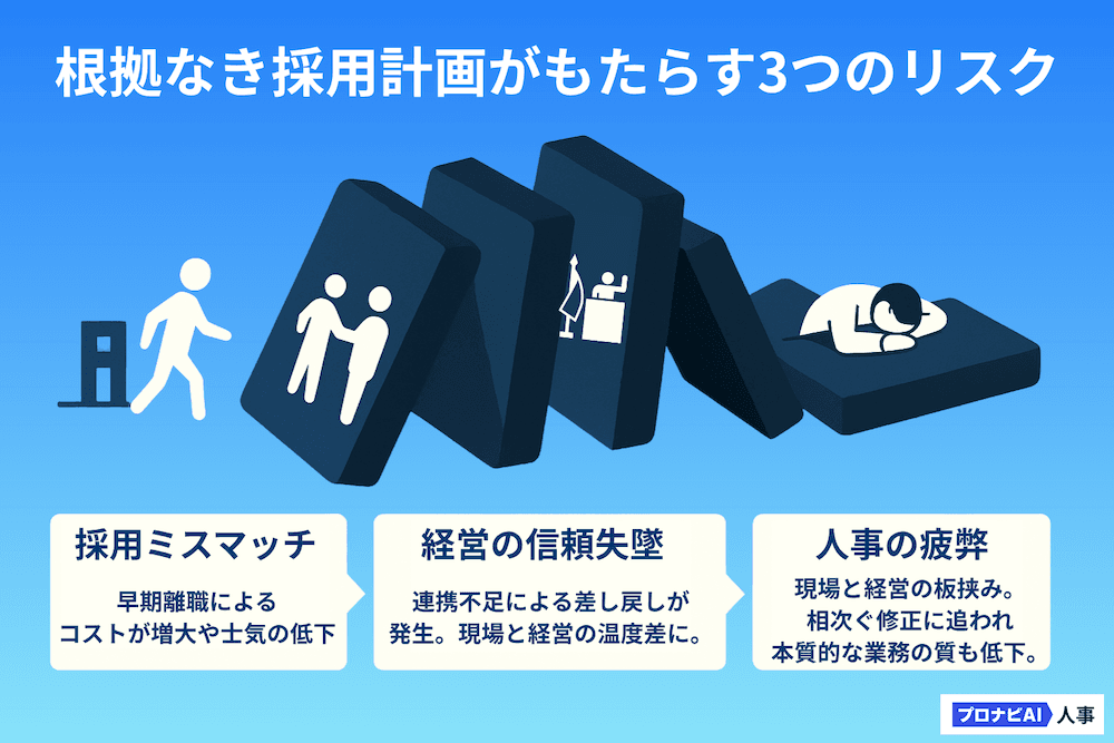 変化の激しい現代において、採用の失敗は単なるコスト増に留まらず、企業の成長そのものを鈍化させる致命的なリスクとなり得ます。特に、根拠の曖昧な採用計画は、予期せぬリスクを引き起こしかねません。