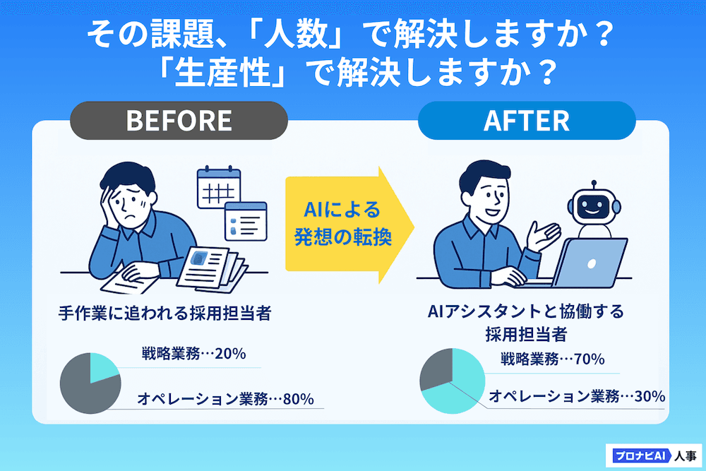 重要なのは、チームの「頭数」を増やすことだけではありません。今のチームメンバー一人ひとりの「生産性」をいかにして最大化するか、という視点です。ここに、AI活用の大きな可能性があります。