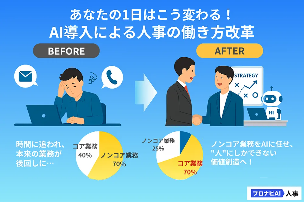 AIを導入することで、人事担当者の日常はどのように変化するのでしょうか。具体的な一日を想像してみましょう。