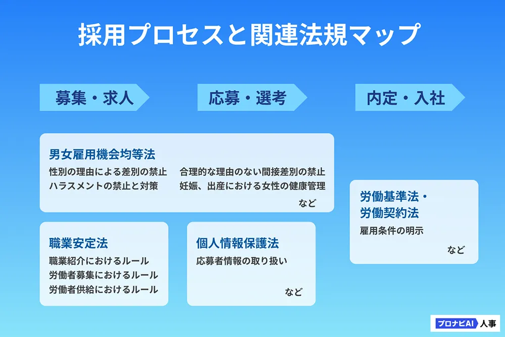 日々の採用業務の流れに沿って、法令遵守の観点から特に注意すべき点を具体的に見ていきましょう。