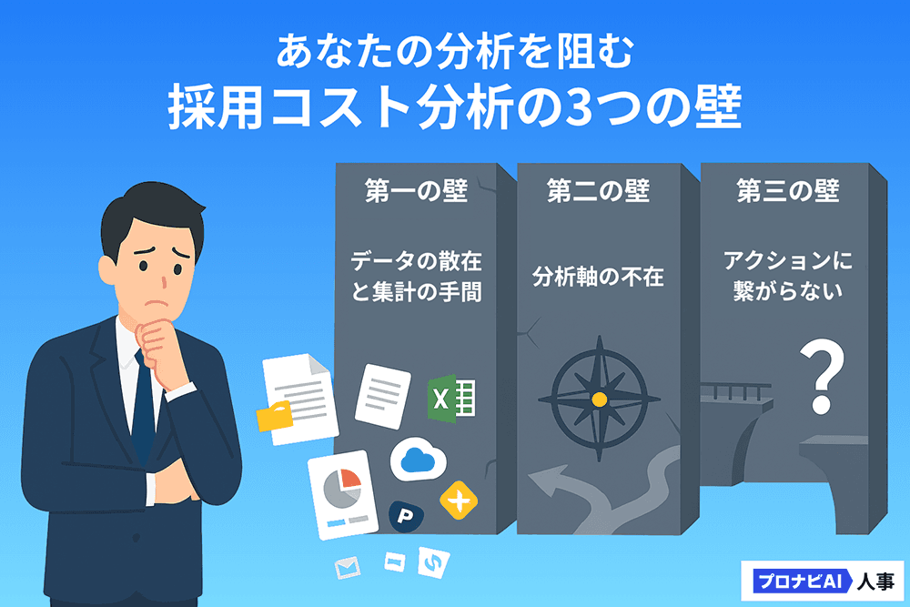 採用コスト分析の本来の目的は、数値を計算することではなく、分析結果から課題を発見し、具体的な改善アクションに繋げることにあります。しかし、従来の手法では、その前段階であるデータ集計という「作業」に多くの時間が費やされていました。