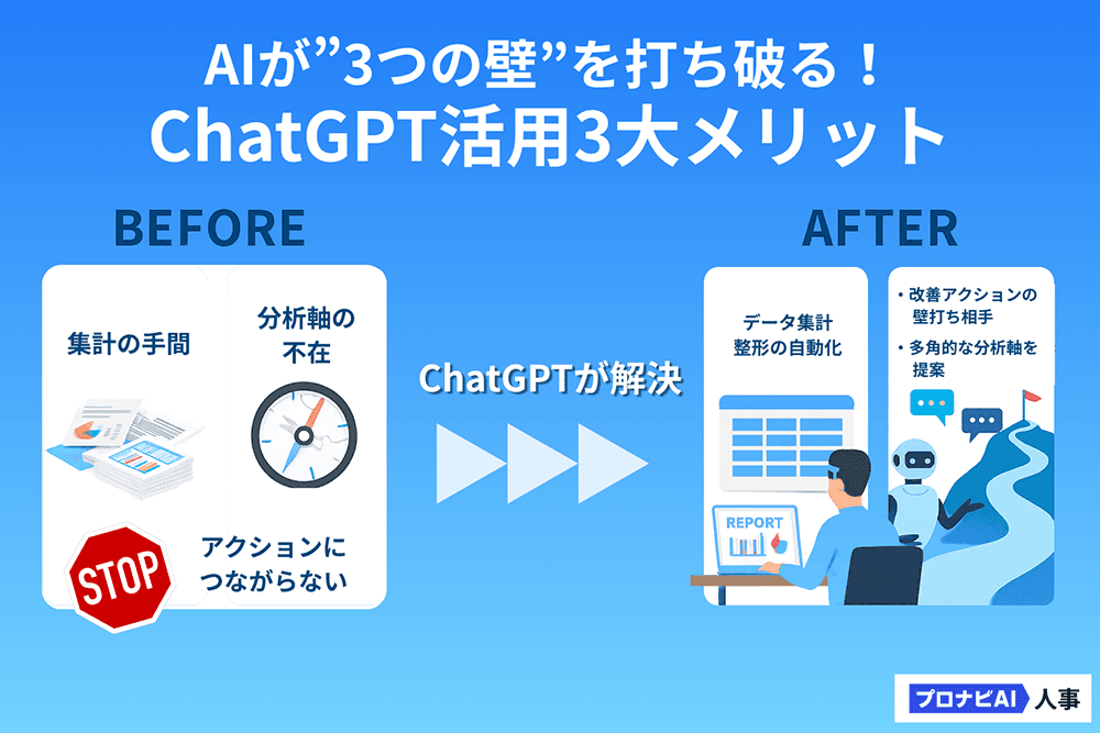 採用コスト分析が進まない原因は、ChatGPTのような生成AIを活用することで、その多くを乗り越えることが可能です。AIは、面倒なデータ処理を代替し、人間がより創造的・戦略的な業務に集中するための有効な選択肢となります。