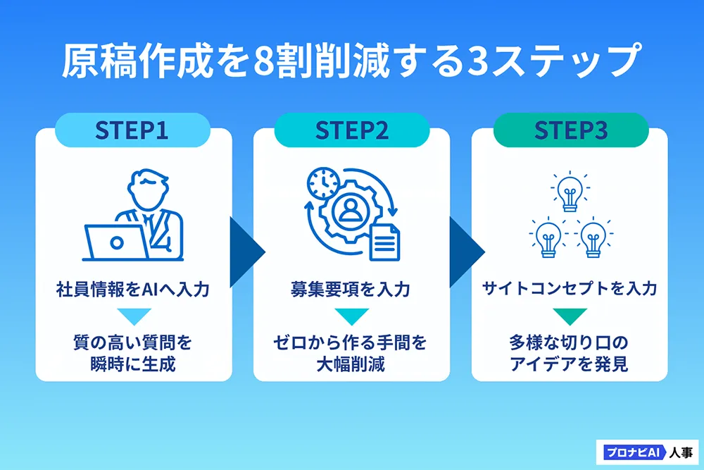 コンテンツの重要性は理解できても、「社員インタビューの記事や職務記述書の原稿を用意するのは大変」と感じるのが、多くの人事担当者の本音ではないでしょうか。