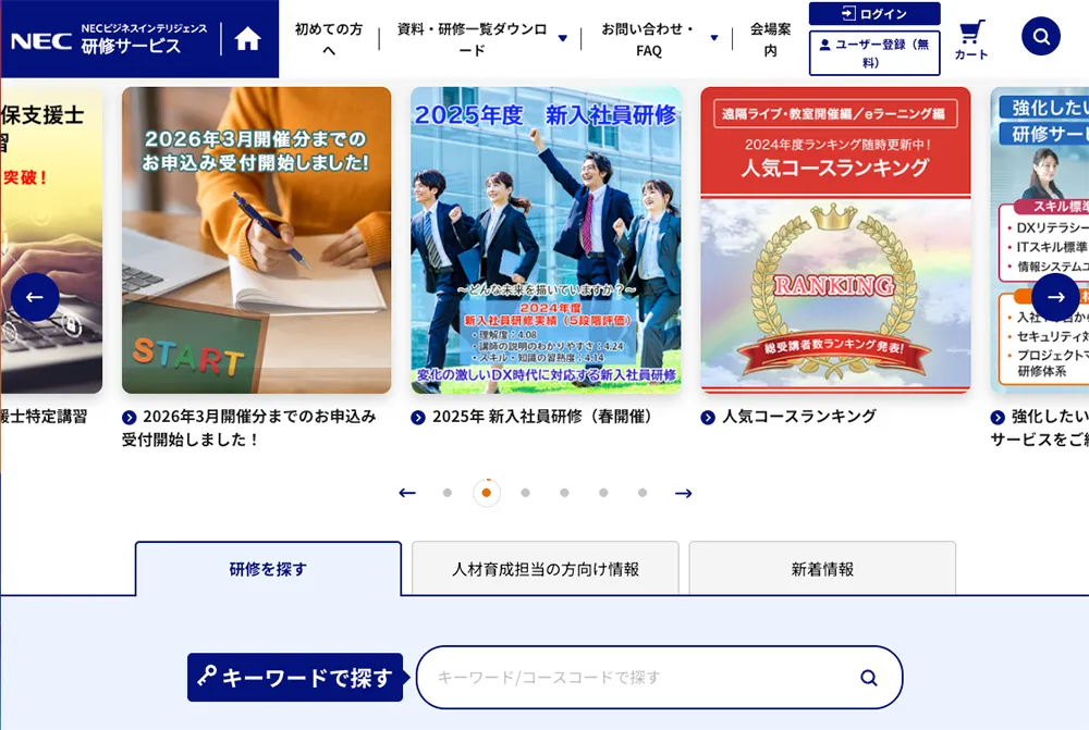 | 研修内容 | 生成AI(活用・設計)、Python、データ分析・機械学習、IT/Office/BI基礎など、職種・難易度別に細分化された250種以上のコース群から選択。 |