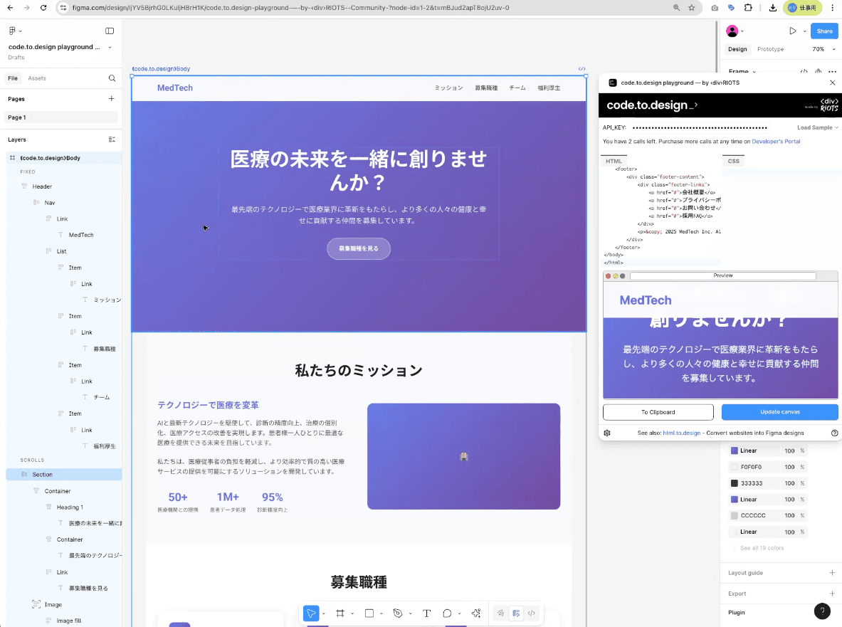 小松:はい、もちろんです。例えば、医療スタートアップの採用ページをFigmaライクに作成するケースを想定しましょう。